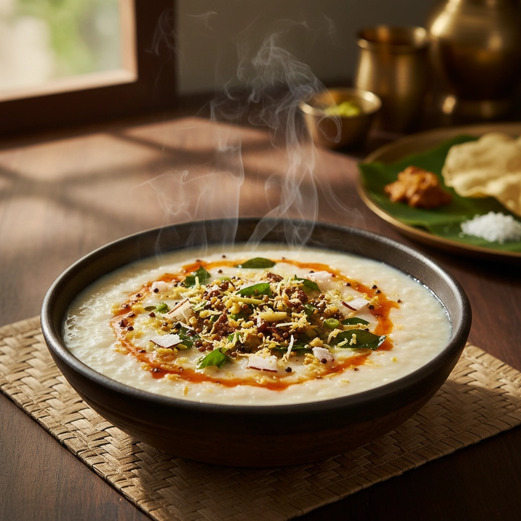 Spicy rice porridge with a kick of kanthari chili.