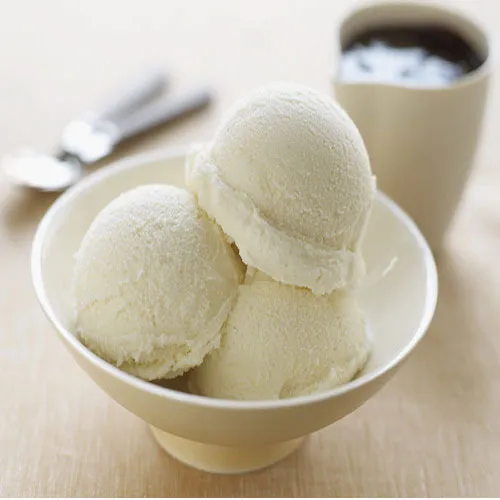 A timeless scoop of smooth and rich vanilla ice cream, perfectly classic and creamy.